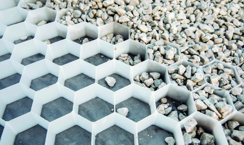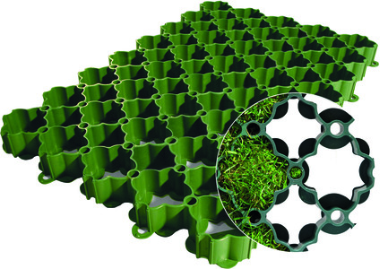 Ground reinforcement grids consist of a honeycomb network of plastic cells within a tile that is a convenient size to handle and install. The tiles often interlock for greater stability and have fixing points to anchor the tiles into the sub-base beneath. The cells are then filled with either gravel or soil – if the area is to be planted up with grass.
