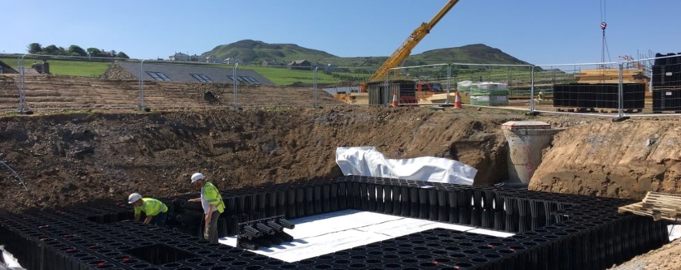 Geocellular structures store water underground, in a way that maintains structural integrity under the site and prevents leakage into the surrounding soil. Their versatile design allows them to be used in configurations and applications across all construction environments, as a standalone solution or as part of an integrated sustainable drainage system (SuDS) scheme. They are used across virtually all types of projects, from housing developments and car parks though to retail sites, and are vital in controlling the removal of rain water.