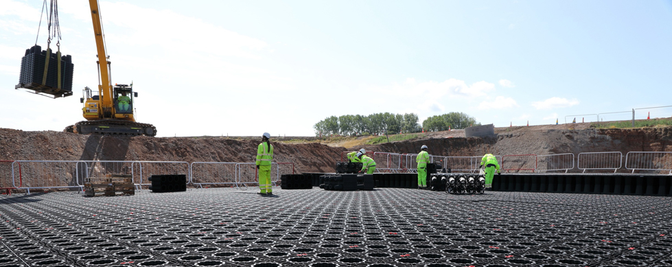 StormBrixx HD900 offers incredible strength while enjoying the same benefits as StormBrixx SD. It is an ideal solution for more demanding installation and loading requirements such as HGV traffic.